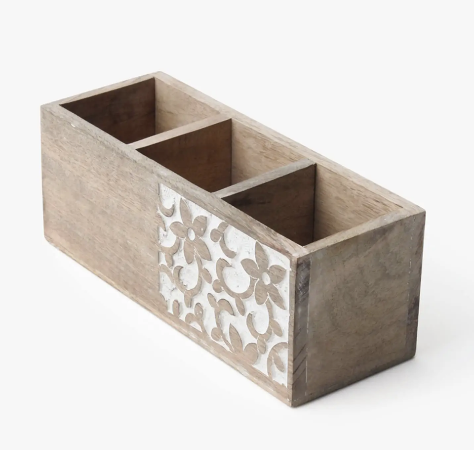 Shape Flatware Holder from India Bamboo Wooden Spoon & Fork Stand for Kitchenware Mango Wood Flatware Holder from India
