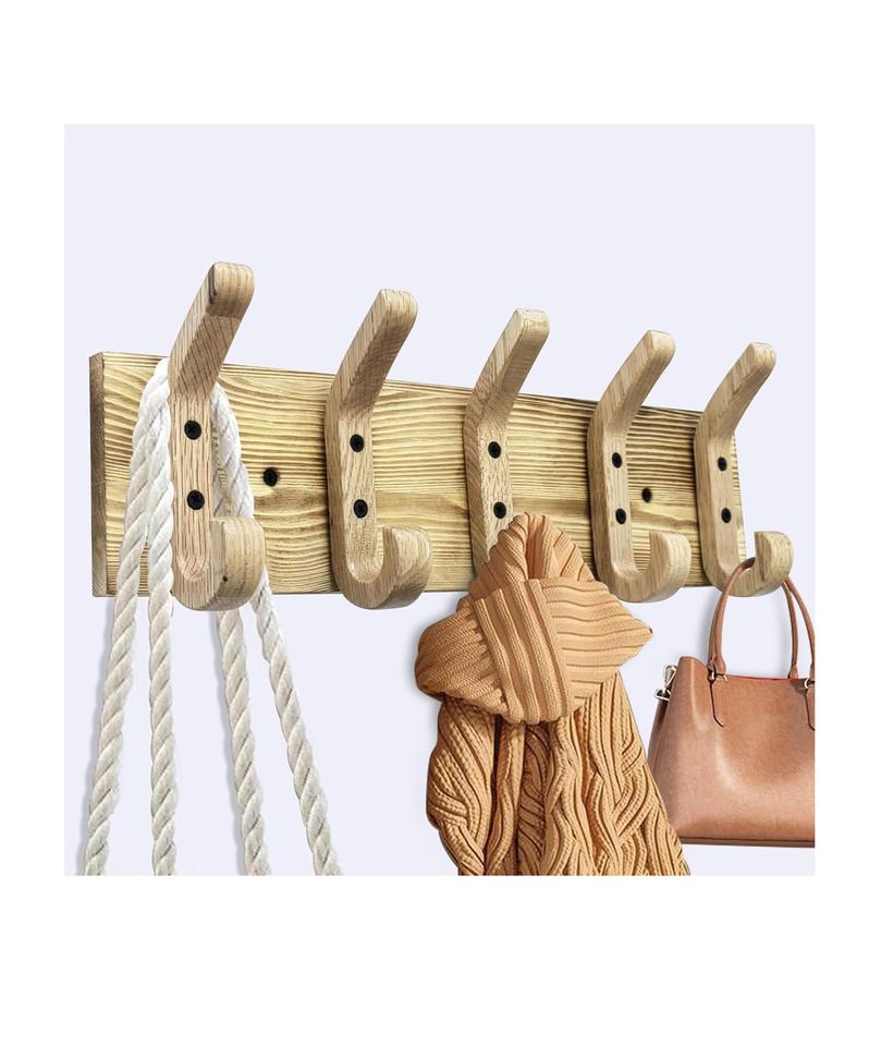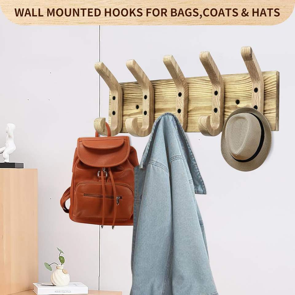 Wooden Hooks Wall Mounted, Natural Oak Wood Wall Hooks,Modern Heavy Duty Wall Mounted Hooks for Wall Hanging Coats, Caps, Keys