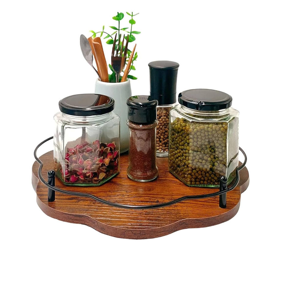 Wooden Household Kitchen Wall Mounted Space Saving Spice Rack Magnetic Seasoning Holder lazy Susan
