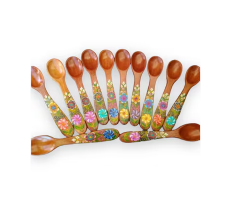 Wooden Ice Cream Spoons Customized Printed Flower Designer Handle 12-Piece Wood Spoons Eco Friendly Wood Spoon