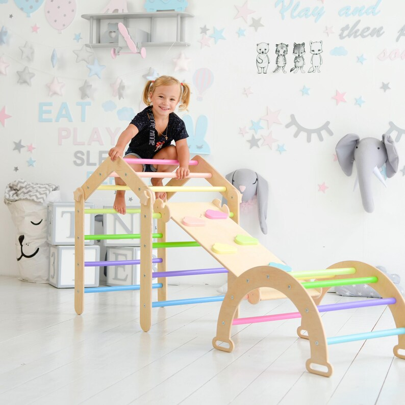 Wooden Indoor Play Gym Arch and Ramp for Kids Montessori Climbing Set