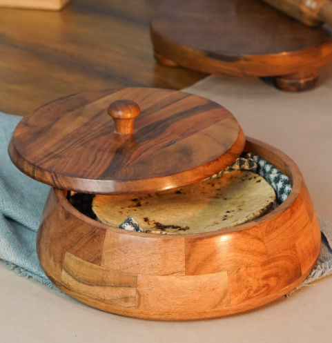 Wooden Item Roti Storage Box Handcrafted Wood Chapati Roti Box Hot Roti Serve Warmer Casserole Kitchen Home