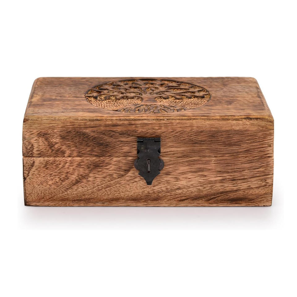 Wooden Jewelry Box Tree of Life Engraving Natural Mango Wood Keepsake Organizer Decorative Gift Storage Boxes Supplier Elegant