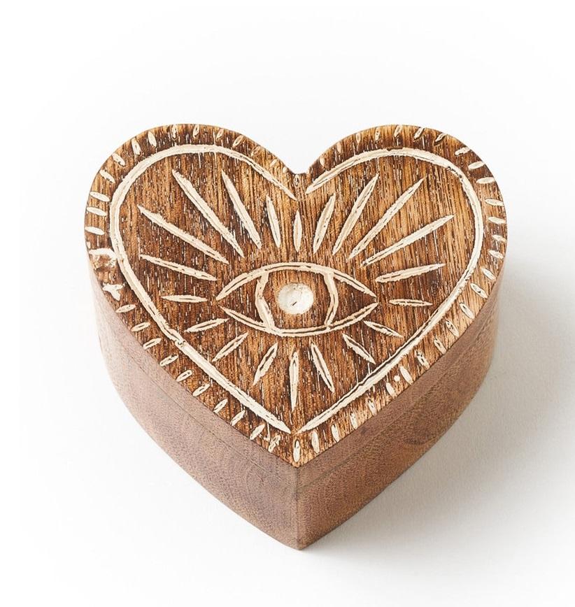 Wooden Jewelry Heart Shape Hamsa Box With Swivel Lid Indian Keepsake Box Wood Stash Trasure Box Sustainable Gift