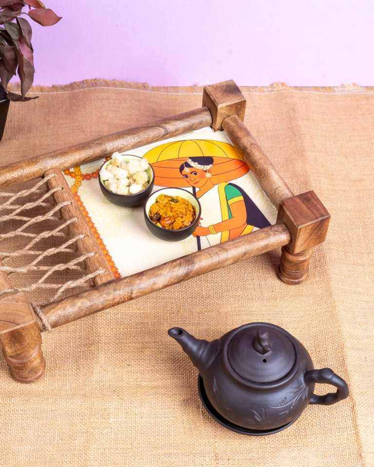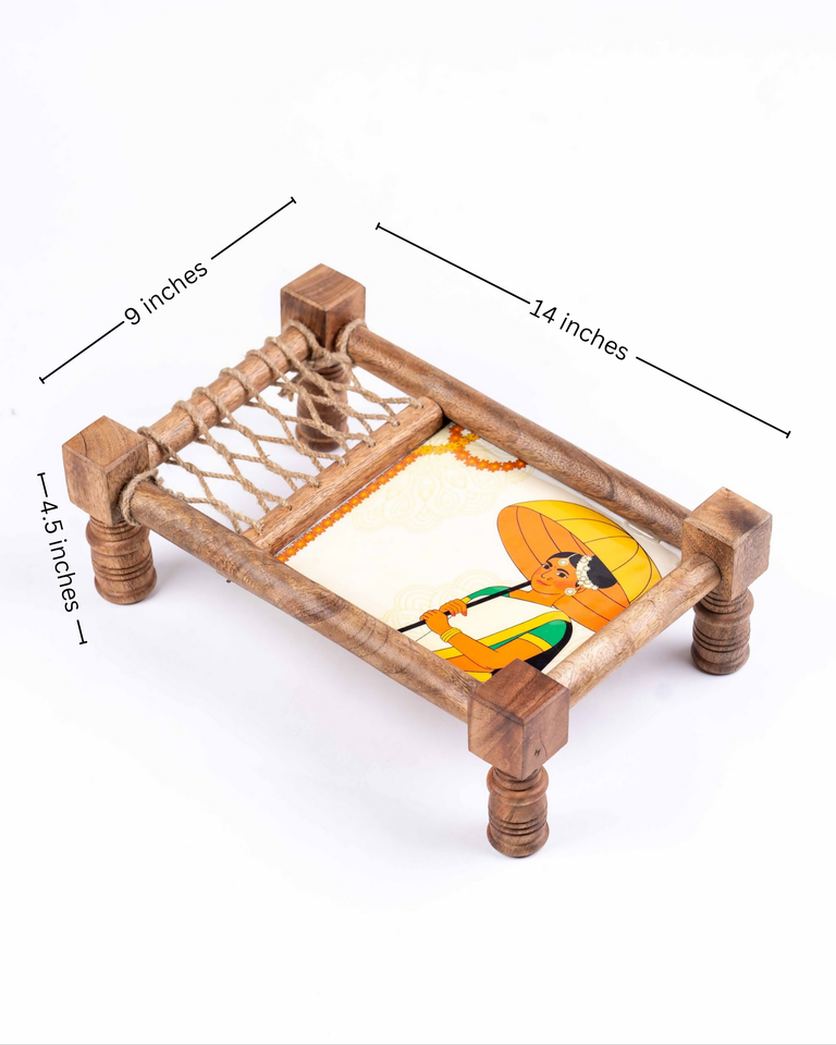 Wooden Khatiya Platter Vibrant Artwork Mini Charpai Serving Tray for Snacks Dry Fruits Tea Time Home Decor Wedding