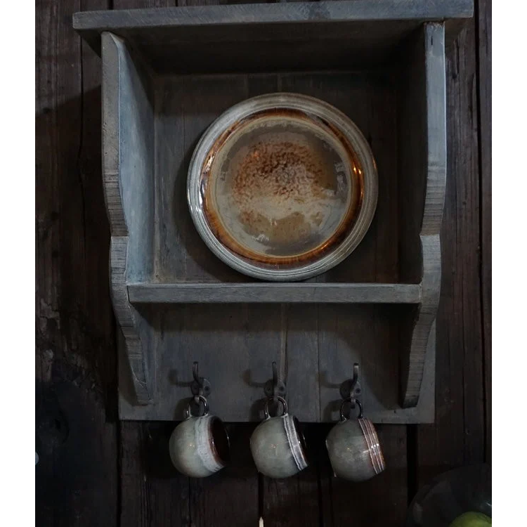 Wooden Kitchen/Coat Rack with 3 Hooks Wall Mount Polished Finish H46xB40 cm Display Shelves