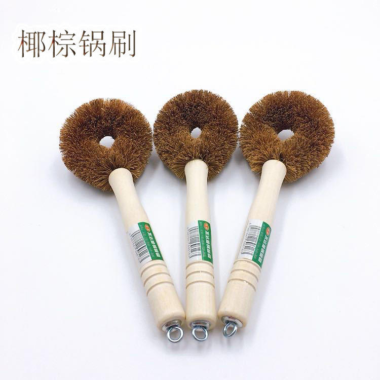 Wooden Kitchen Sanding Brush with Coconut Fiber Bristles, Eco-friendly Palm Brush for Home Use.