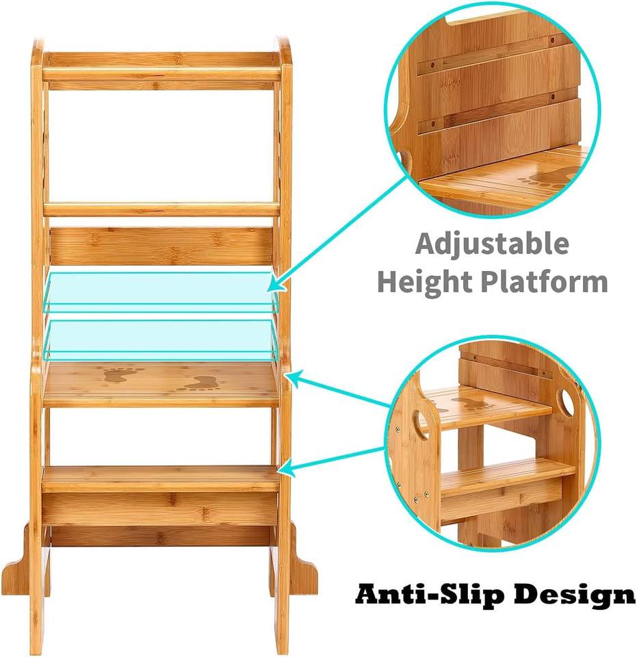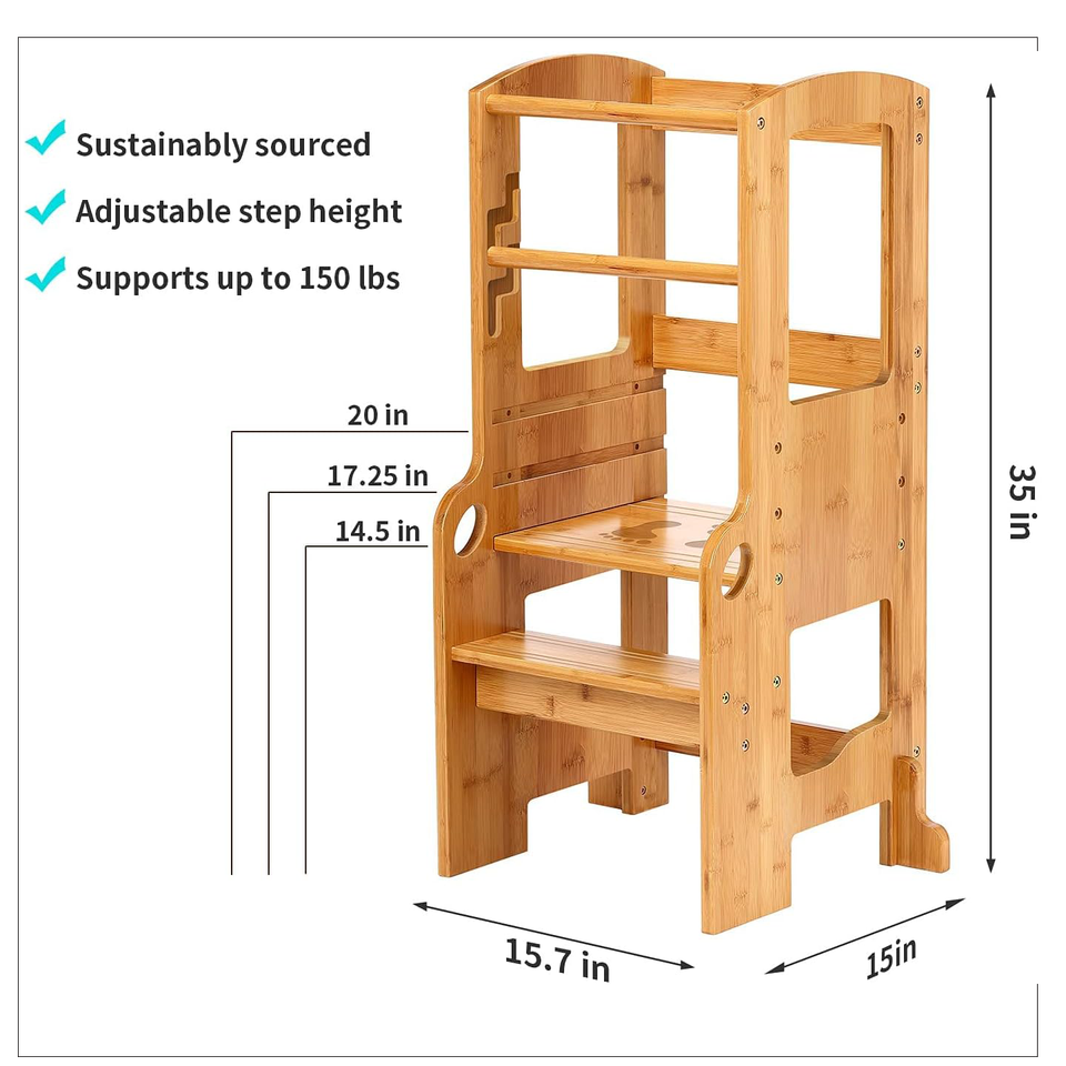 Wooden Ladder Chair Observation Tower Bamboo Learning Tower for Toddlers Kids Step Ladder Stool Kitchen Helper