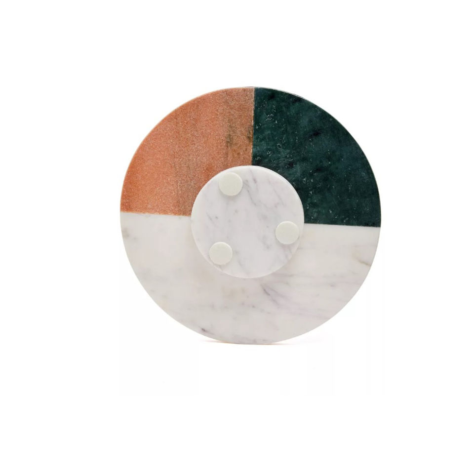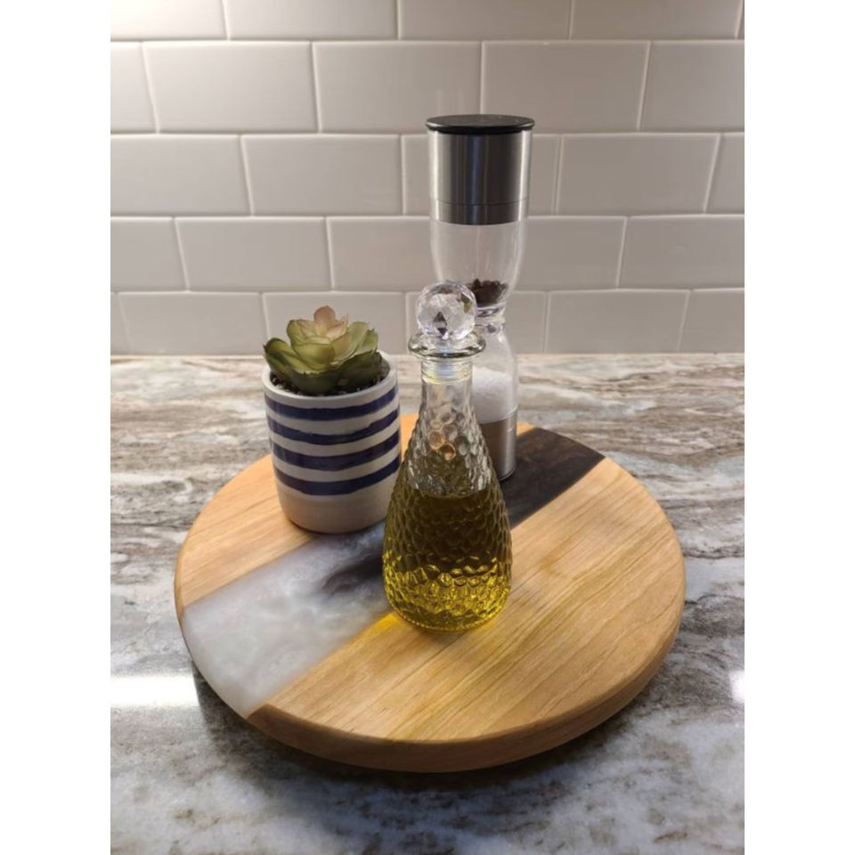 Wooden Lazy Susan Cake Stand with Ceramic Inlay Rotating Tray Perfect for Weddings and Stylish Table Display Decor