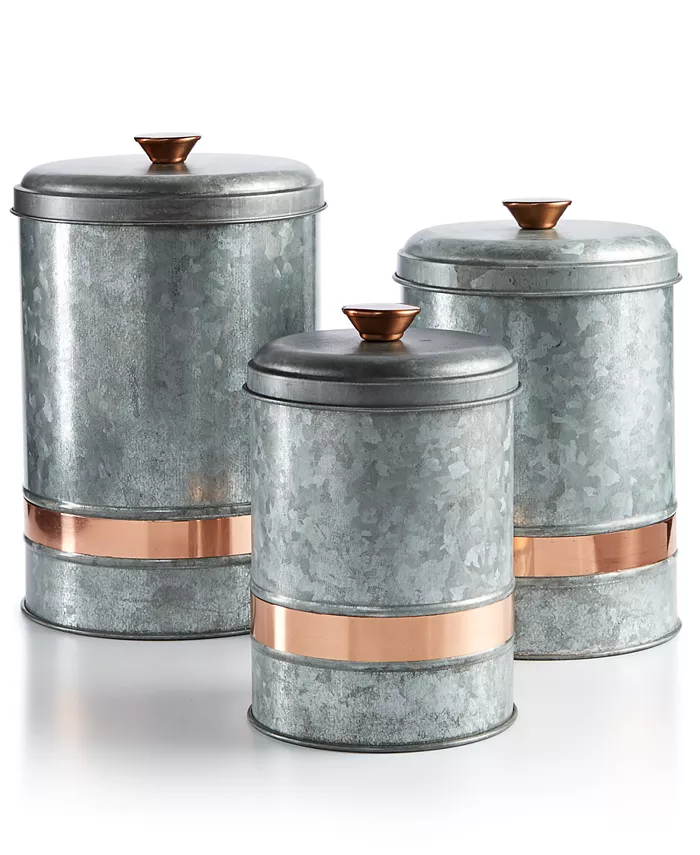 Metal Galvanized Food Storage Garlic Containers Boxes & Bins Tea Coffee Sugar Wooden Lid Canisters for the Kitchen Storage Jars