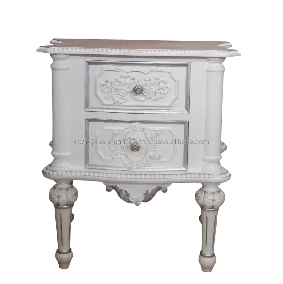 Wooden Mahogany Carved Nightstand Furniture French Style.