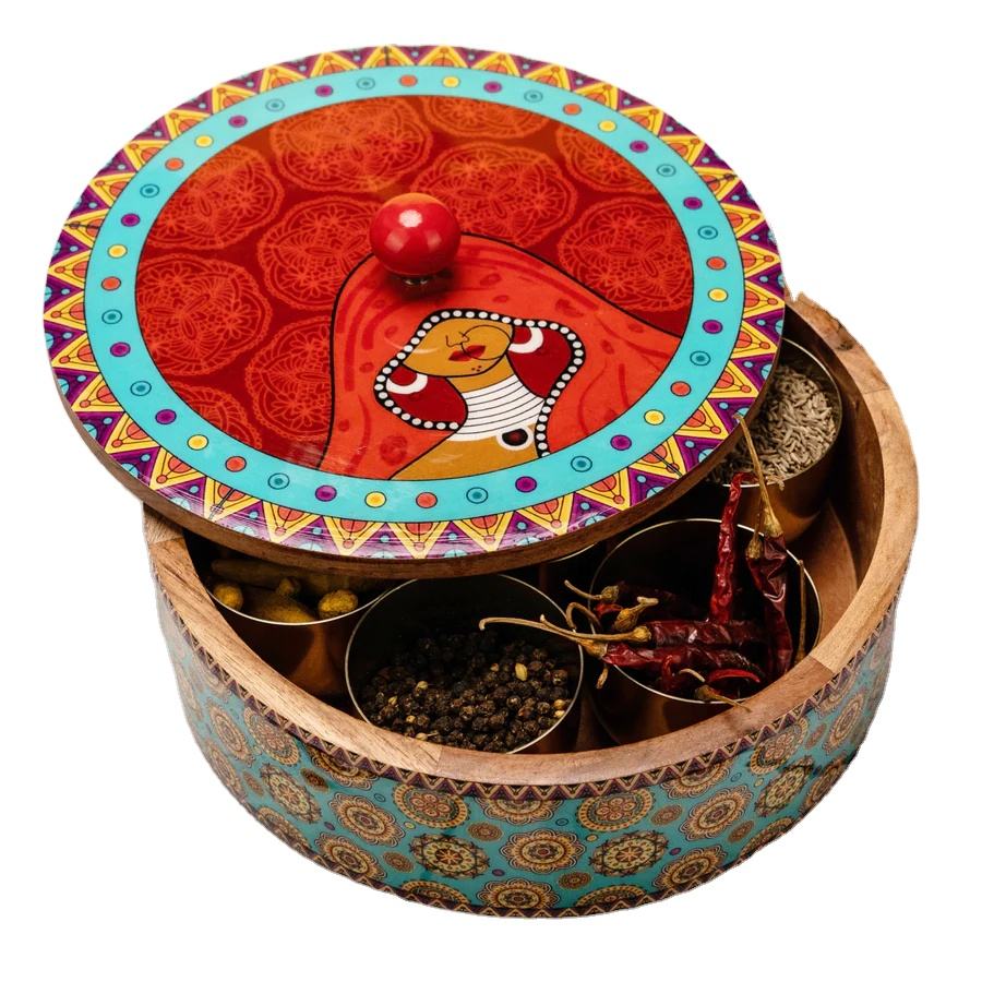 Wooden Masala Box Good quality with steel bowl Handmade Premium Quality Spices Storage Box wooden