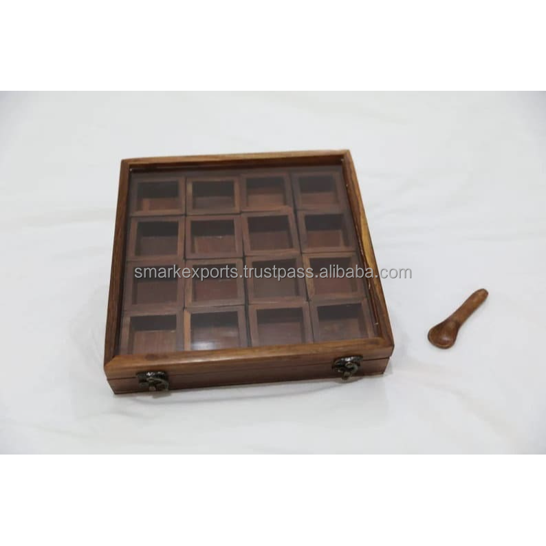Wooden Masala Box Spice Organizer with Spoon Wooden Large 16 Slot Love Religious Wood India Box & Case Premium Polished 20 Pcs