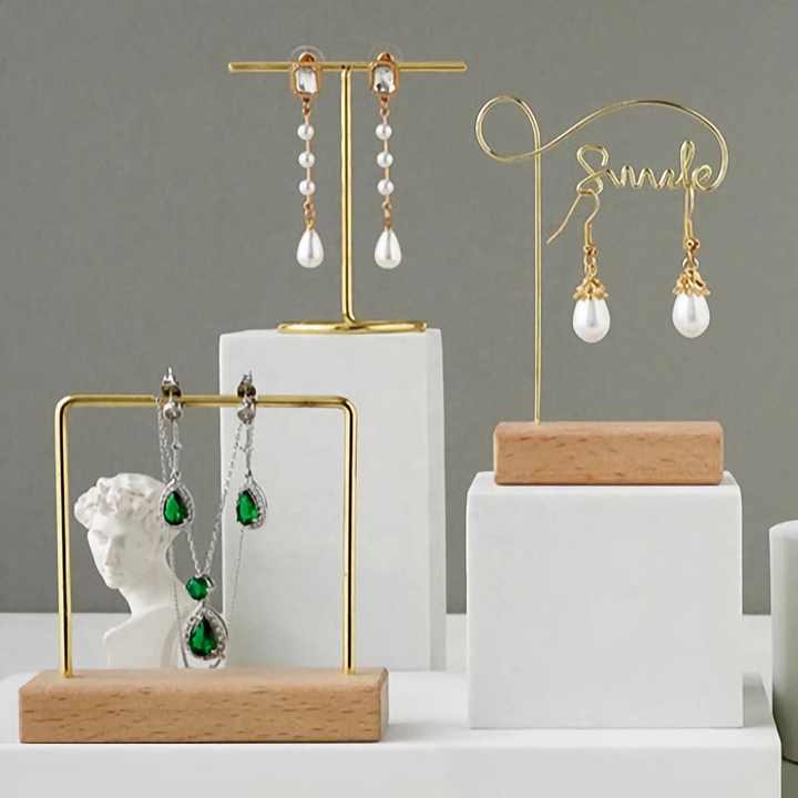 Gold-Tipped Wooden Metal Portable Luxury Jewelry Display Stand for Bracelets Necklaces Rings Earrings Shop Use & Trays Packaging