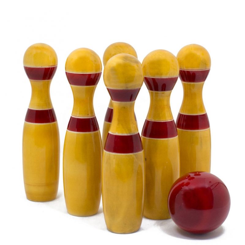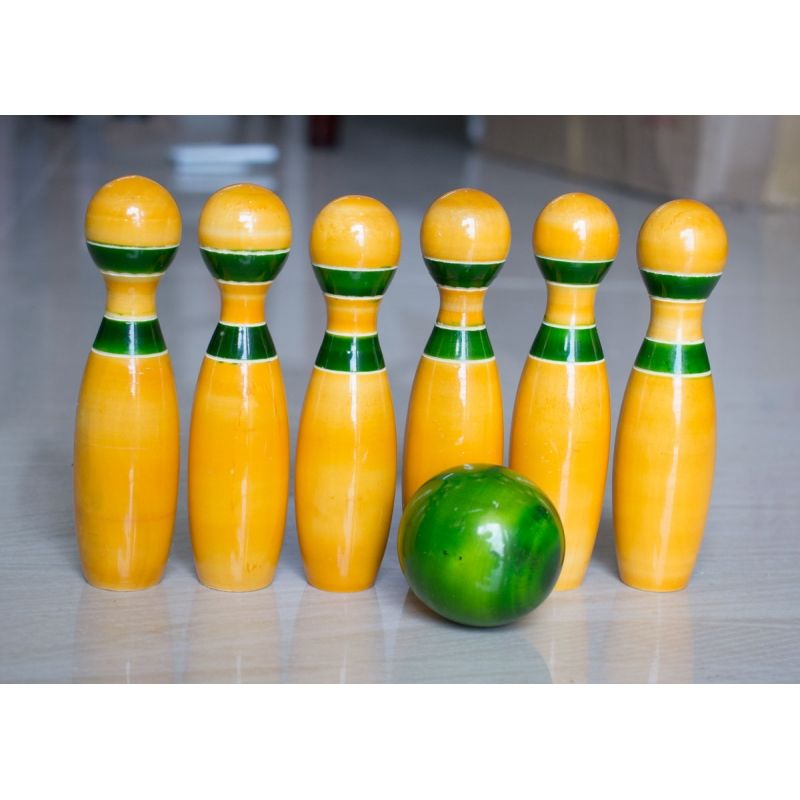 Wooden Mini Bowling Pins Toy Set Non Toxic| Indoor & Outdoor Fun Learning Game| Light Weight & Easy to Carry From Tradnary