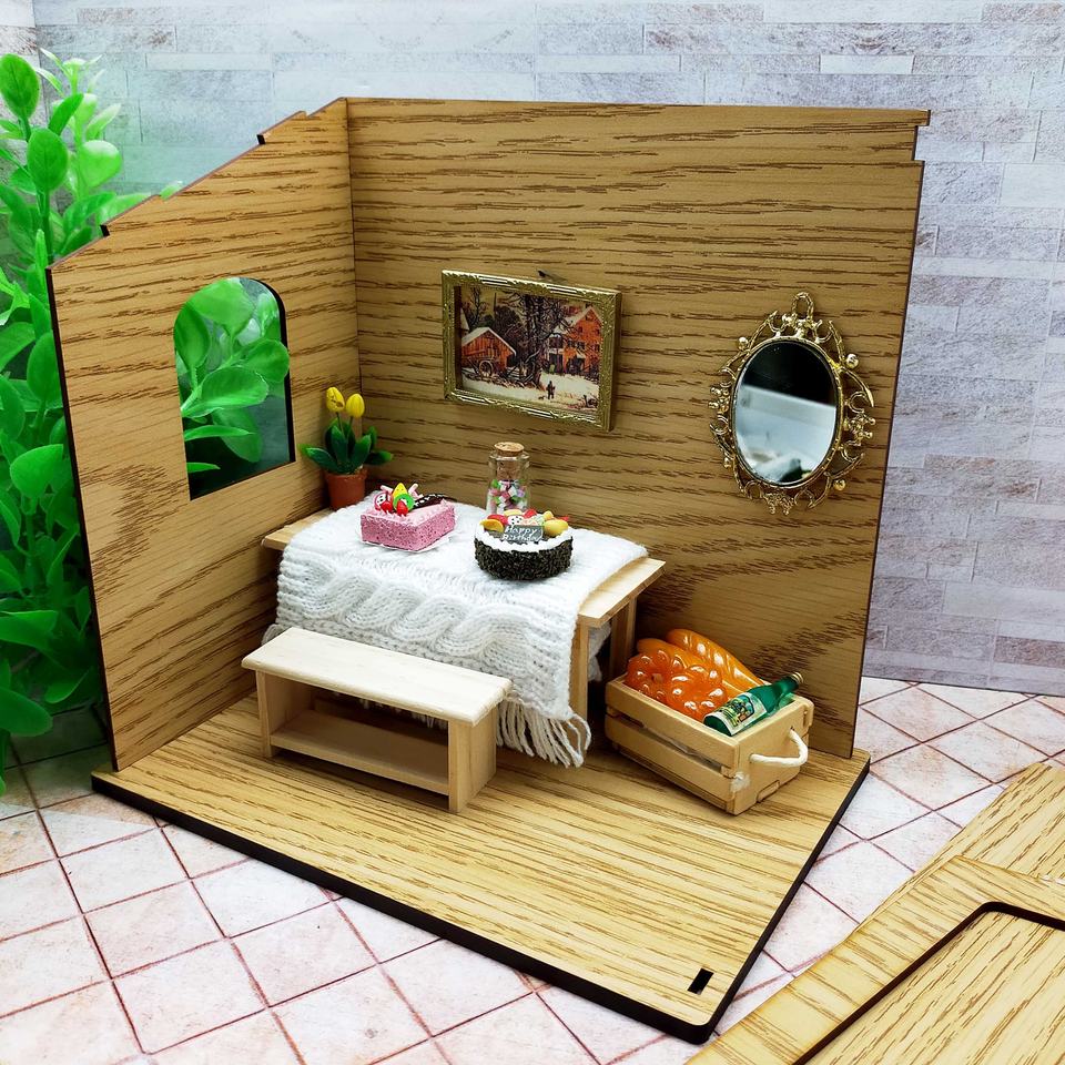 Product name:Wooden Miniature Doll house 4 Sides Furniture Educational Toy set