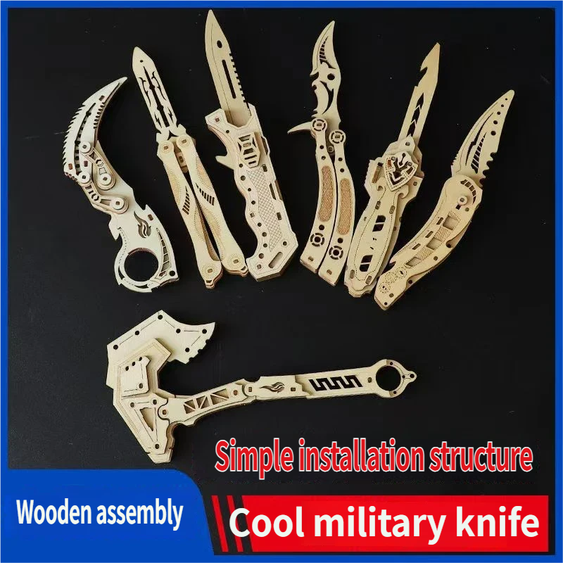 3D Wooden Assembly Model Knife DIY Jigsaw Puzzle Wooden Building Blocks Toy for Boys Kids Creative Gift