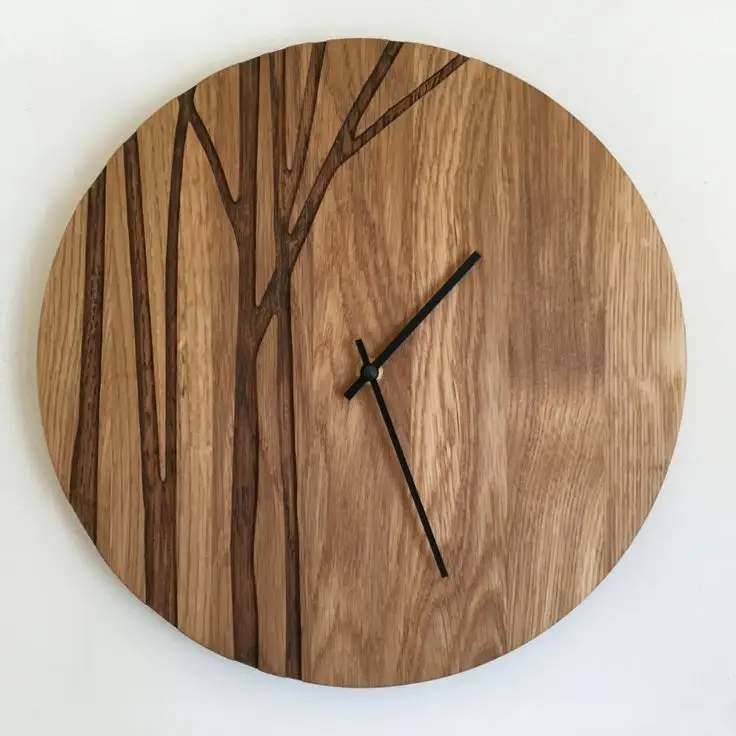 Modern Home Decor Wall Clock Wooden Design with Brown Iron Abstract Pattern Luxury Quartz Display Needle Type for Home Living