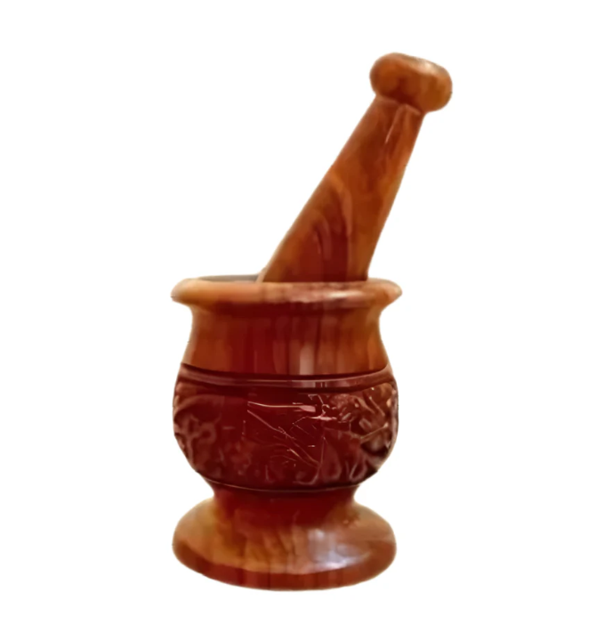 Wooden Mortar & Pestle Set (Okhli & Musal) Made from 100% Sheesham Wood Natural Brown with Full Carved Traditional Design