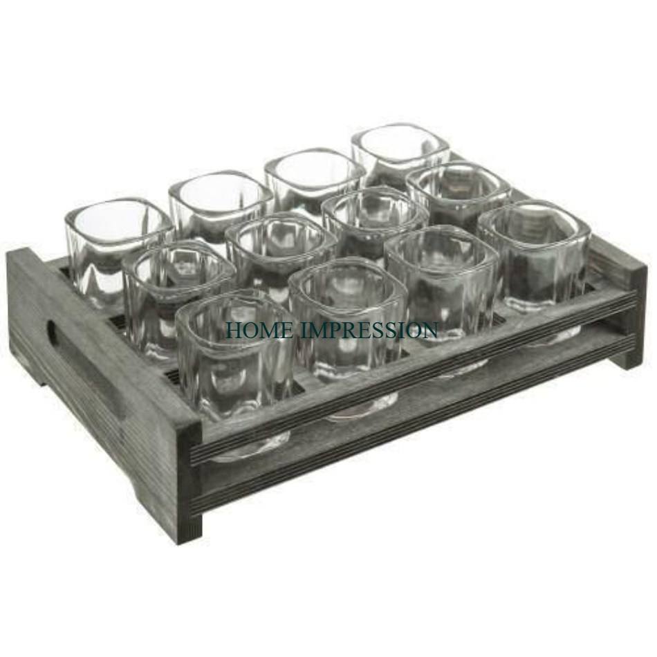 Wooden Mug Holder And Glass Display Rack 4 In 1 Handmade Large Size Shelving Unit Modern Stylish Glass Rack For Wine Cup Holder