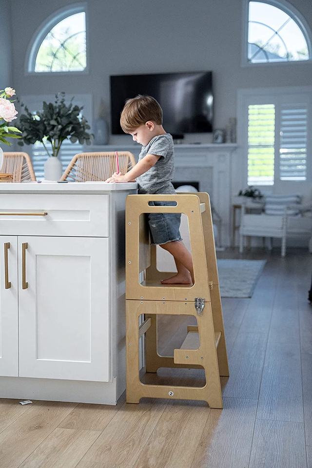 Wooden Multi-Purpose Toddler Step Stool Learning Helper Tower Bamboo Toddler Kitchen Tower Montessori Waldorf Style Toddlers