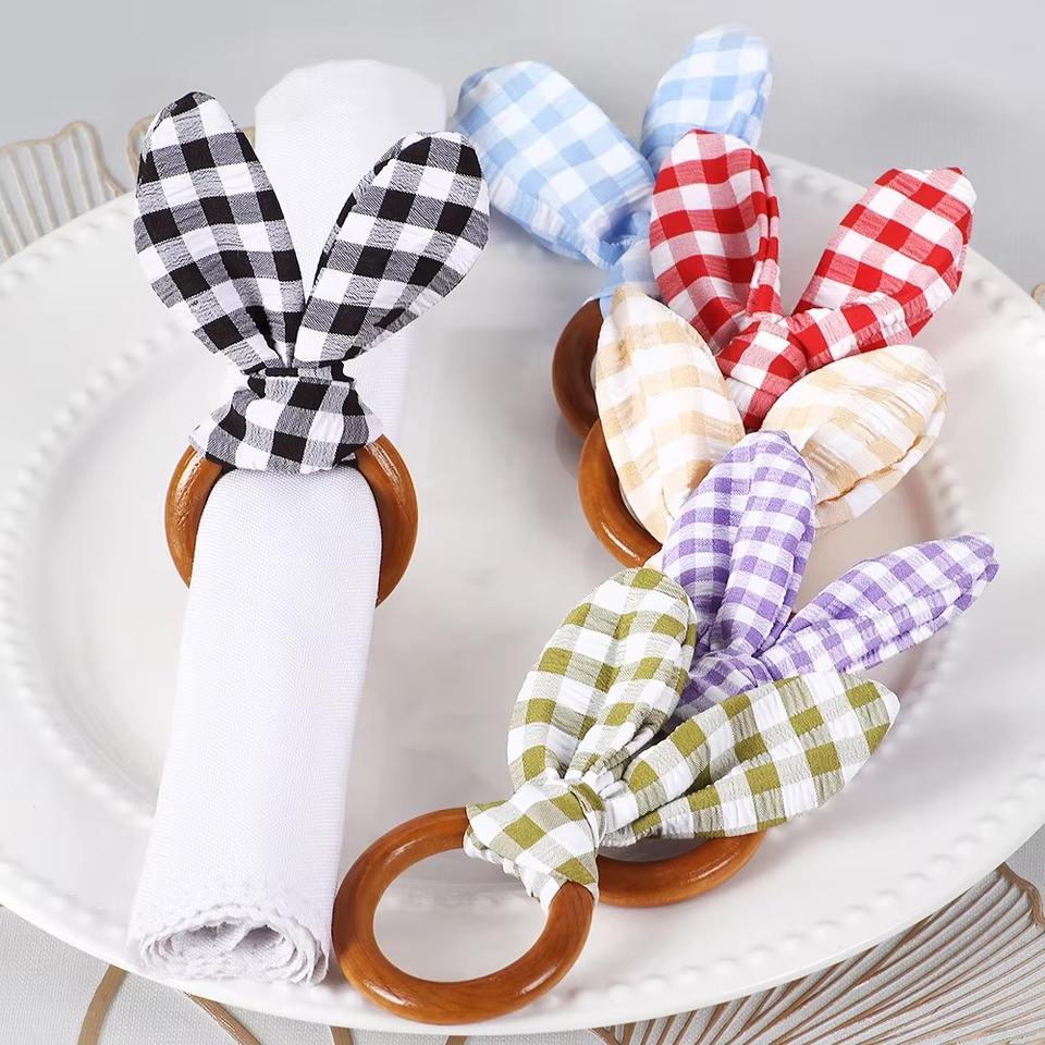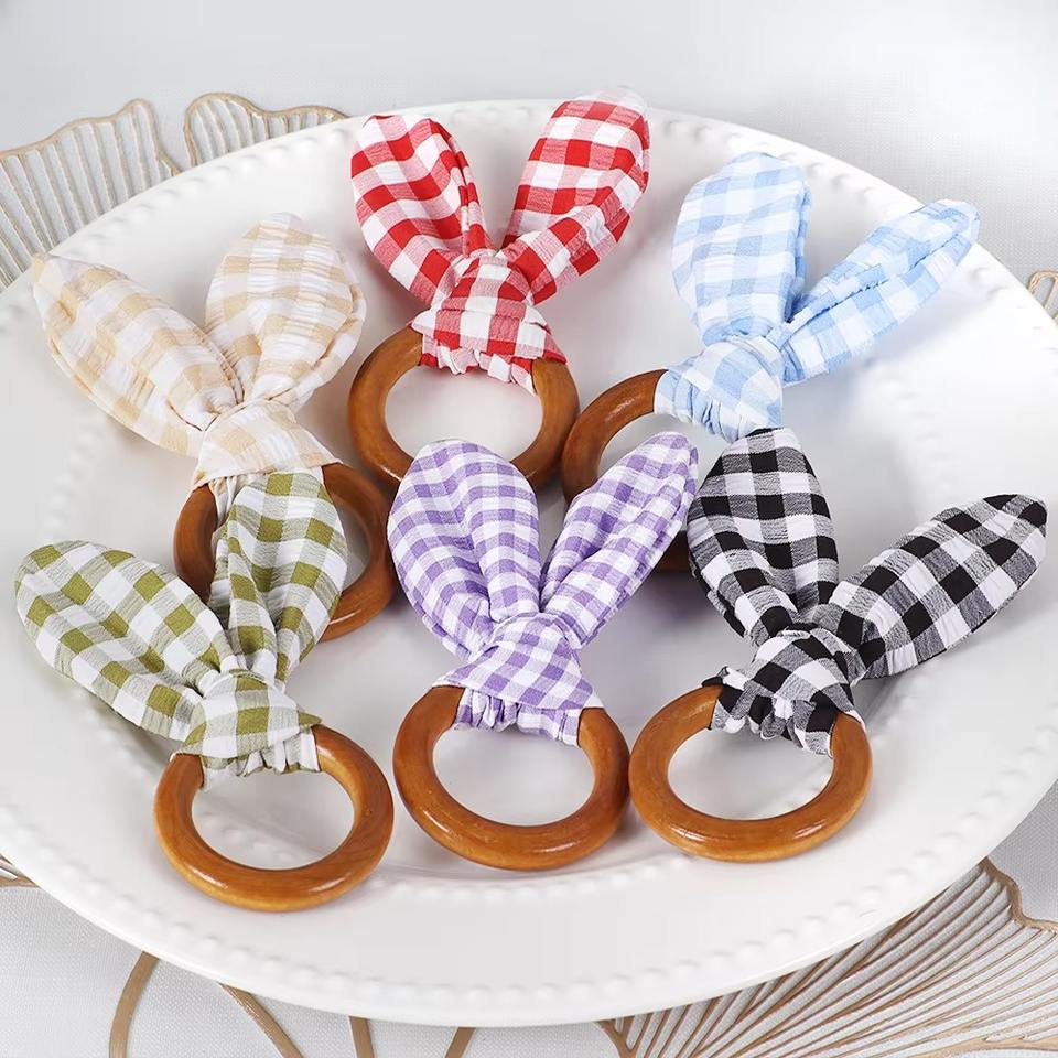 Wooden Napkin Ring Holder with Fabric Bow for Rustic Table Decor Wedding Events Parties Hotel Dining Handmade Accent