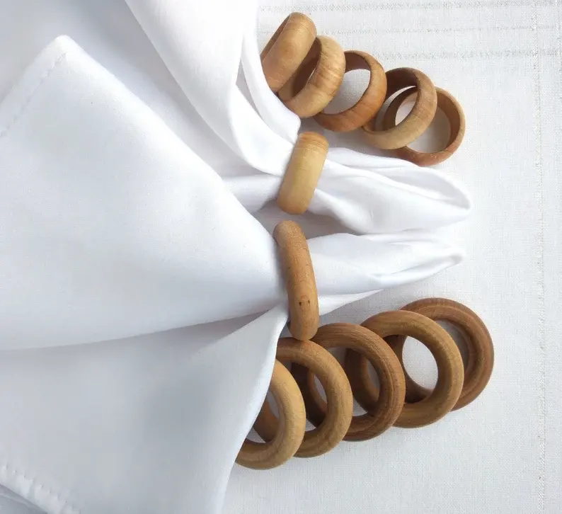 Stocked Wooden Napkin Rings Set Includes Scarf Ring in Wood Design for Christmas Gift or Table Decor