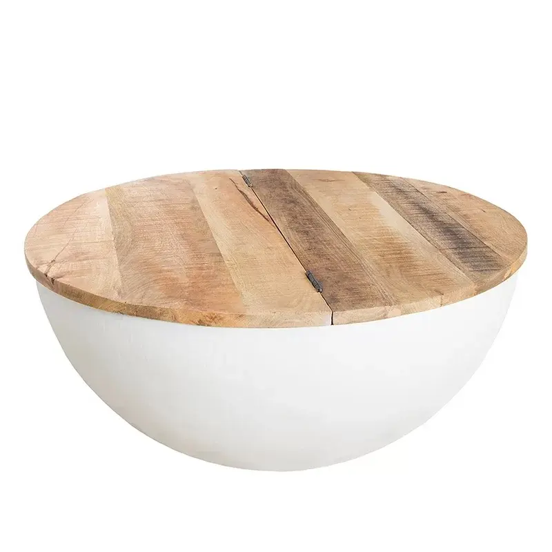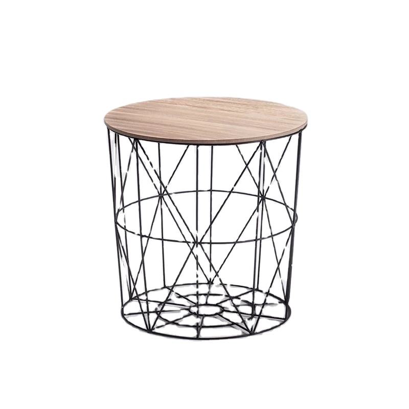 Wooden Natural Top Gold Wire Design Coffee Table Livingroom Decor Indoor Furniture Centre Console Table in Wholesale Price