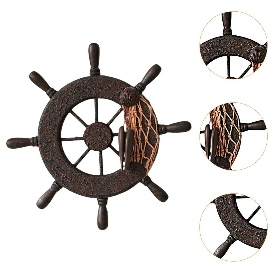 Wooden Nautical Ship Wheel Ornament with Brass and Polystone for Glam Design for Office Hanging Christmas Accessory