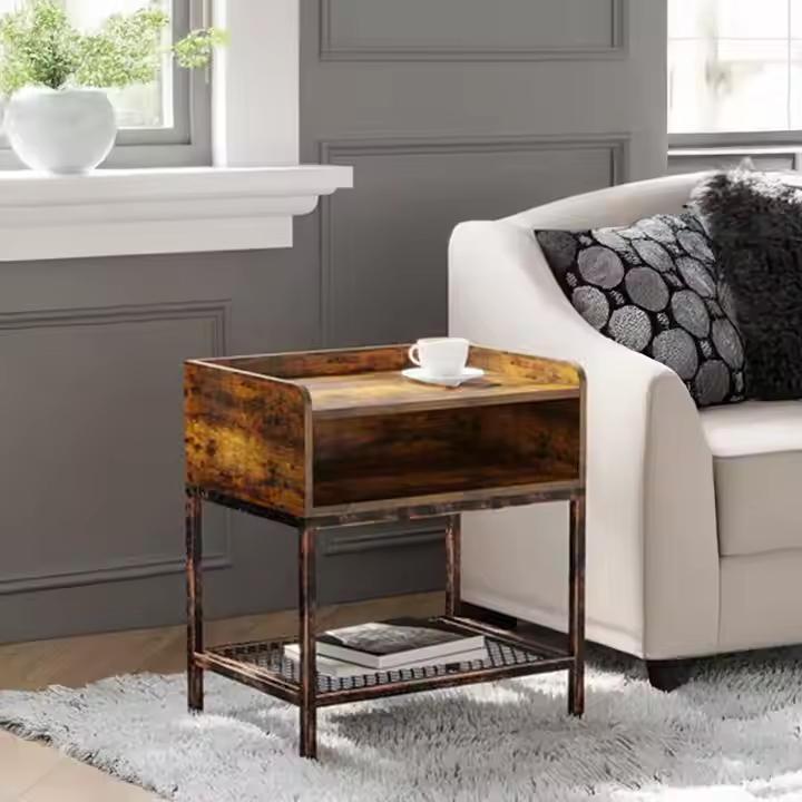 Modern Metal and Wooden Nightstand Convertible Coffee Table Console with Shelf for Bedroom Home Furniture