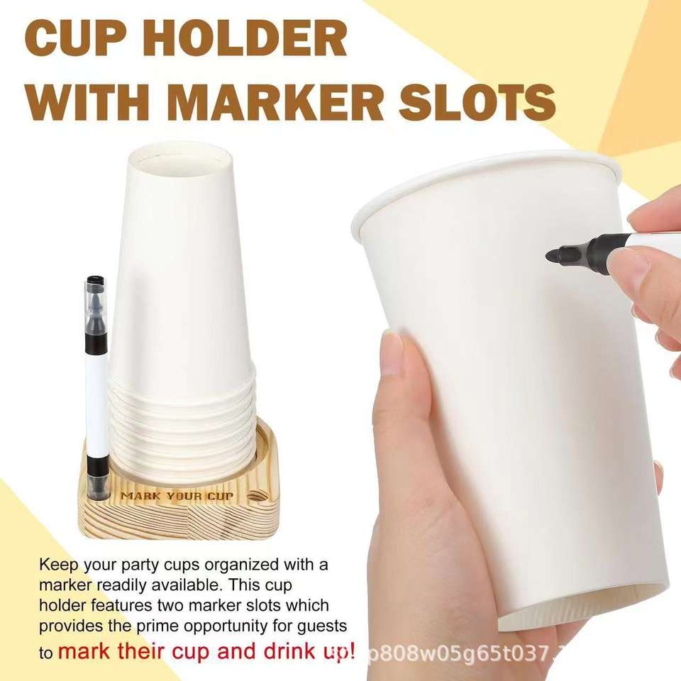 Wooden Paper Cup Holder With Marker For Party Home Coffee Shop Use Natural Wood Color Desktop Storage Dispenser