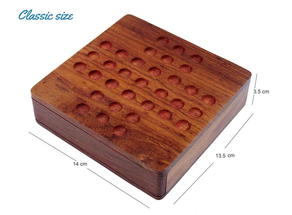 Wooden Peg Solitaire Board Game With Storage Drawer Brain Training Puzzle Toy For Kids Adults And Family Indoor Play