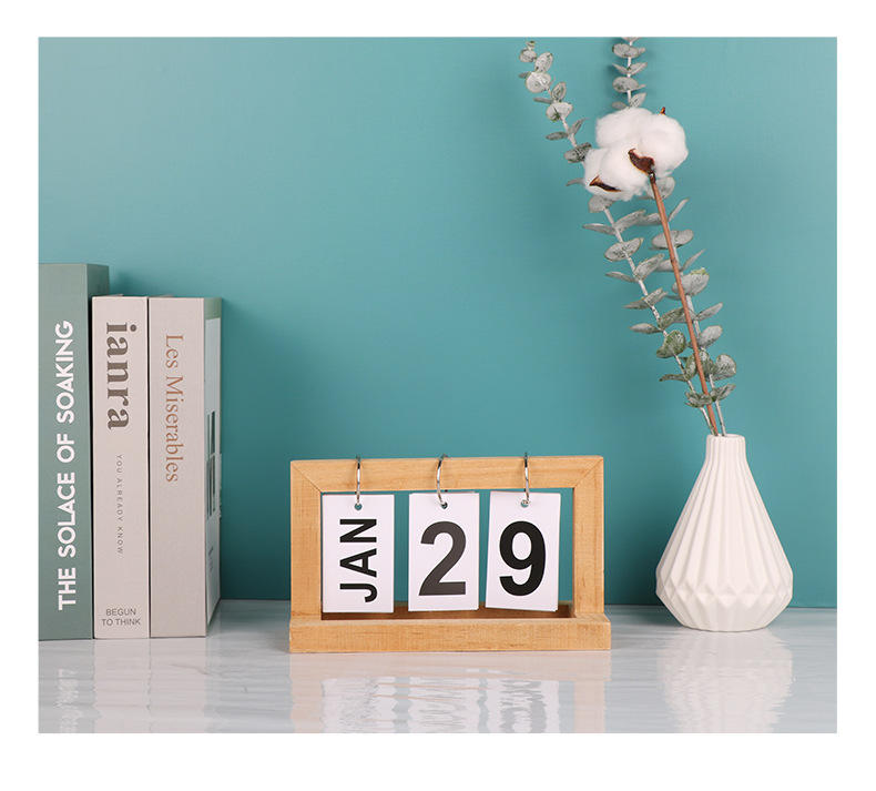 Wooden Perpetual Calendar Flip Month Date Display Desktop Schedule Daily Planner Office Home Decoration Photography Props