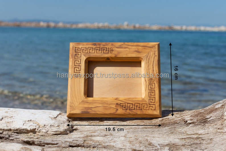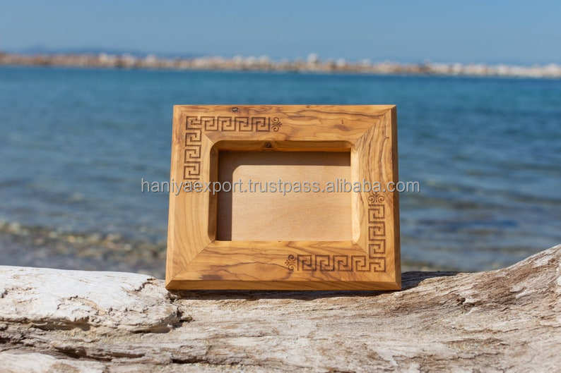 Wooden Photo Frame Made of Fine Olive Wood | Ancient Greek Meander Engraved Design | Available in 3 sizes