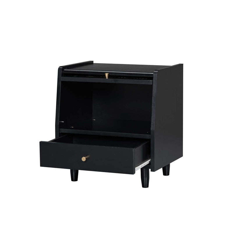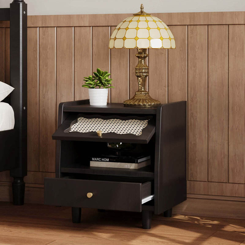 Wooden Rattan-Woven Storage Nightstand with 1 Drawer Nightstands Product Type