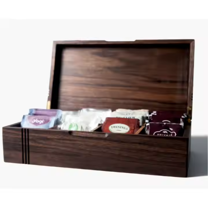 Wooden Rectangle Tea Jewelry Box Handmade High Quality Dark Walnut Finish Square Key Lock Closure Classic Style Home Decoration