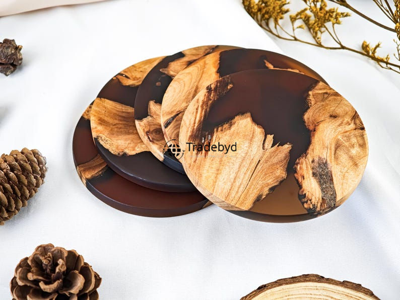 Resin Handmade Premium Coasters Set 4X4 Inches Square Luxury Drink Coasters for Hotels Cafes Tradebyd (Custom Colors Available)