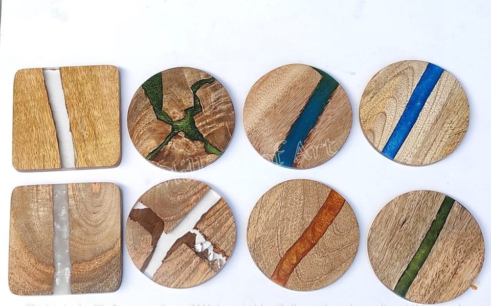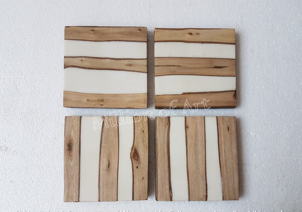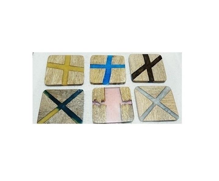 Personalized Logo Eco-Friendly Square Coffee Coaster Set Classic Wooden Resin Inlay Arrow for Drinks Promotional Mats Pads