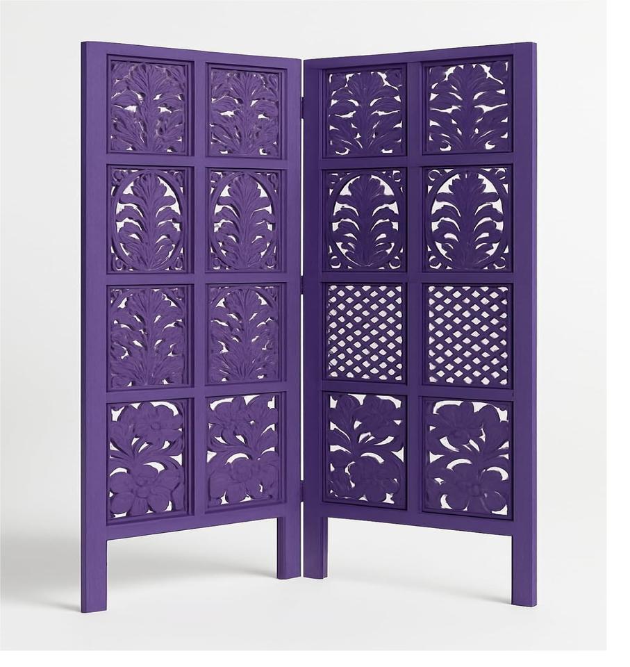 Wooden Room Divider Partition Privacy Screen Wood Separator Handicrafts Partition Carving Design - 5 Feet Tall (Purple)