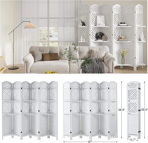 Wooden Room Partition Natural Wood Room Divider with Shelves 4 Panel Folding Privacy Screen for Home, Office