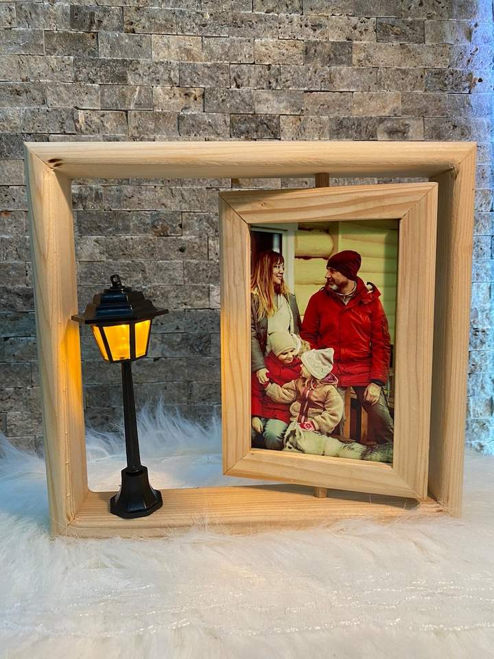 Wooden Rotating Photo with Led Street Lamp, Engagement Gift, Gift for Couples ,Double Sided Rotating Photo Frame