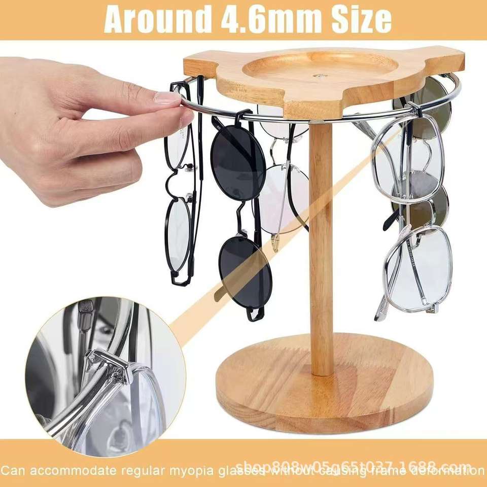 Wooden Rotating Sunglasses Display Rack 12 Slots Multipurpose Desktop Organizer Eco Friendly Eyewear Storage Stand