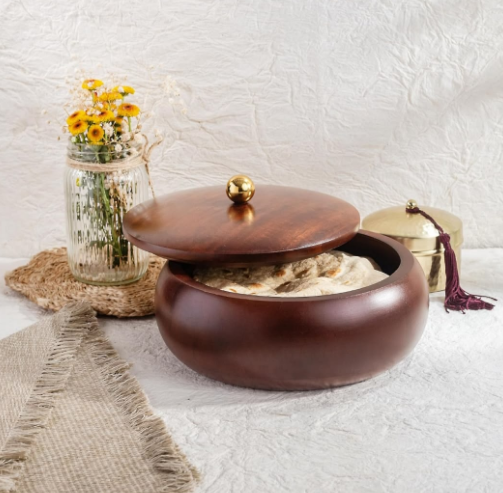 Wooden Roti Box Durable Brown Color Polished Food Grade Natural Wood Wedding Restaurant Tableware Roti Container