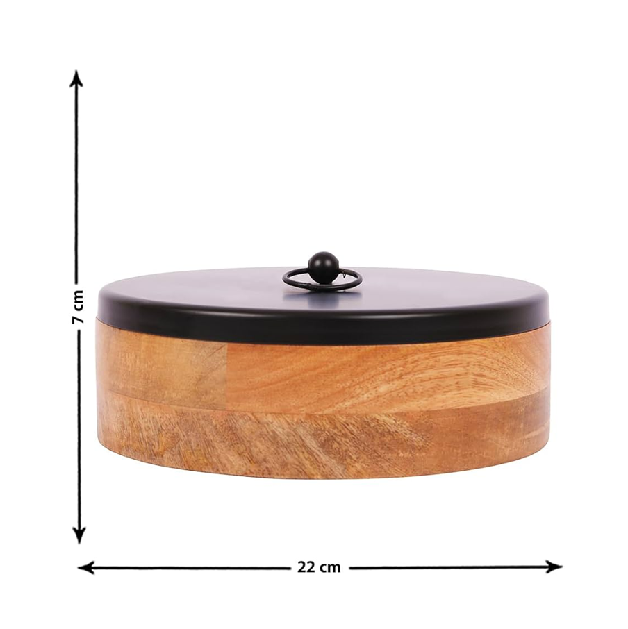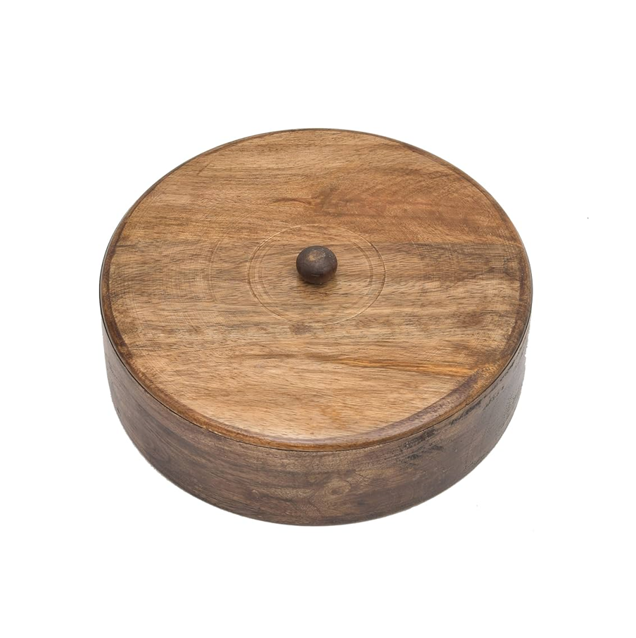 Wooden Roti Box With Decorative Floral wood Lid Designer Chapati Storage Container For Kitchen Dining use round shape
