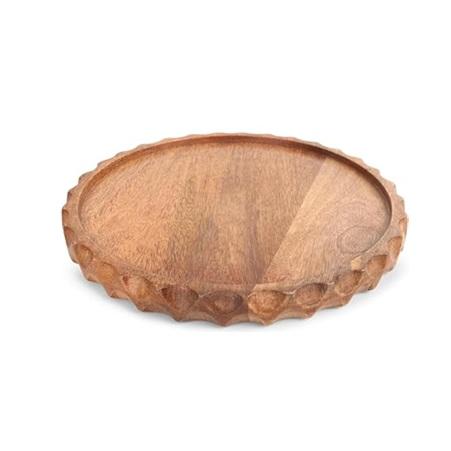 Wooden Round Shape Bowl with Handles for Fruits Vegetables and Parties for white carved design at best price