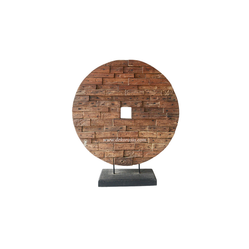 Wooden Round Statue Ornament Wood Art Sculpture Handmade for Table Top Home Decoration Accessories