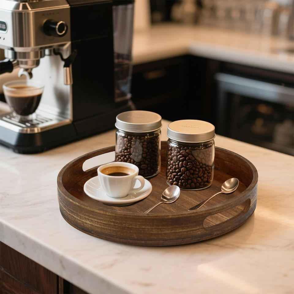 Product Name:Round Wooden Decorative & Serving Tray with Handles