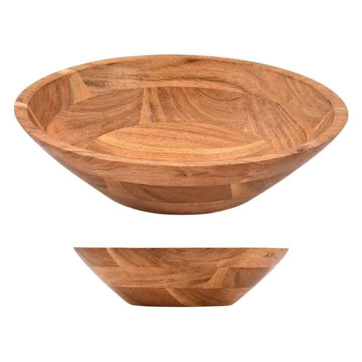 Acacia Wood Eco-Friendly Classic Large Salad Bowl Set with Magnetic Serving Utensils 6-8 Helpings Capacity for Parties