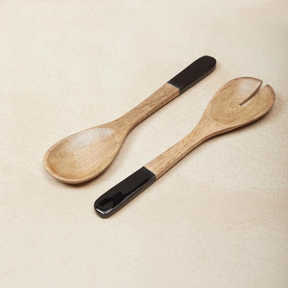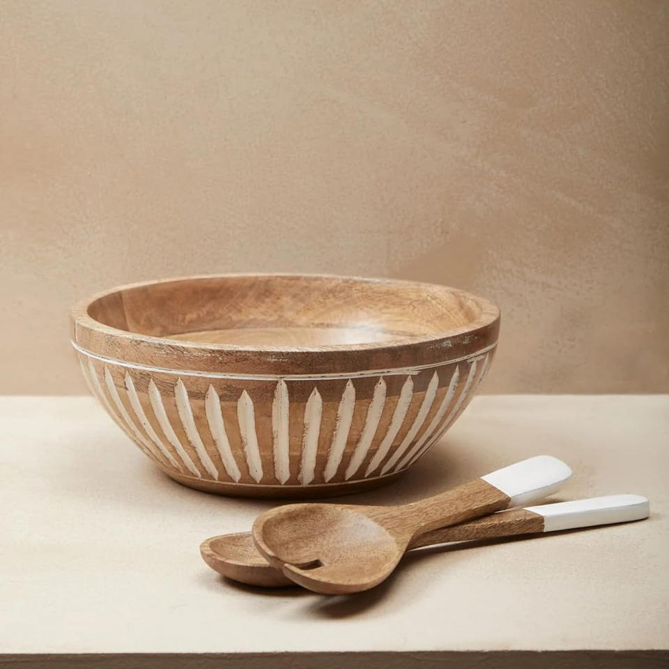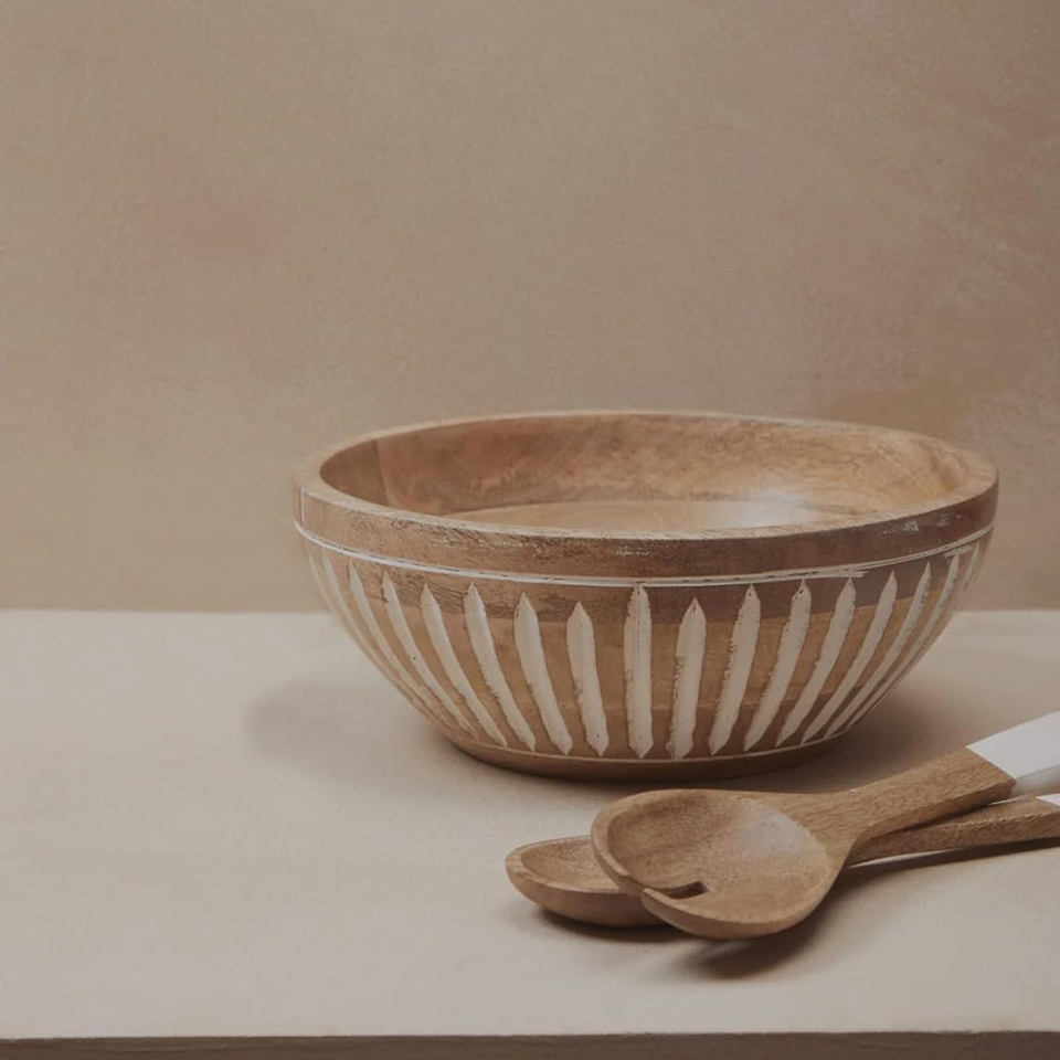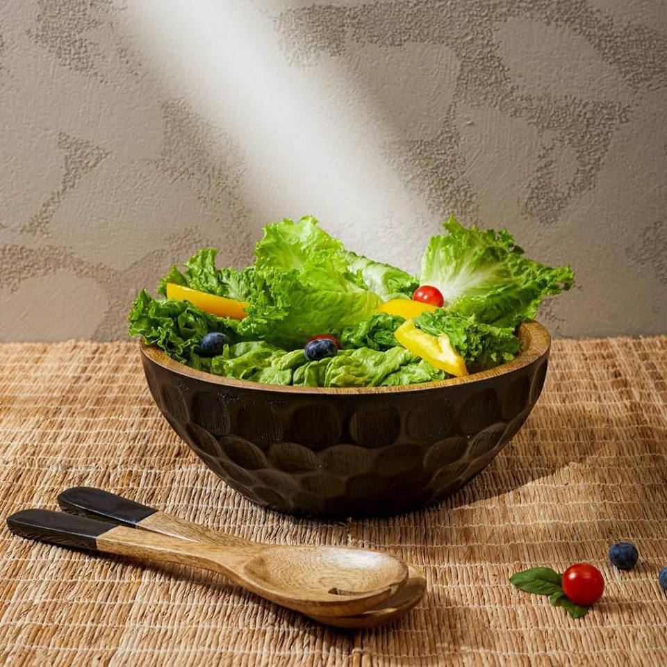 Wooden Salad Bowl with Spoon and Fork Set Mango Wood Serving Bowl for Fruits & Snacks Dining Table & Kitchen Multipurpose Bowls
