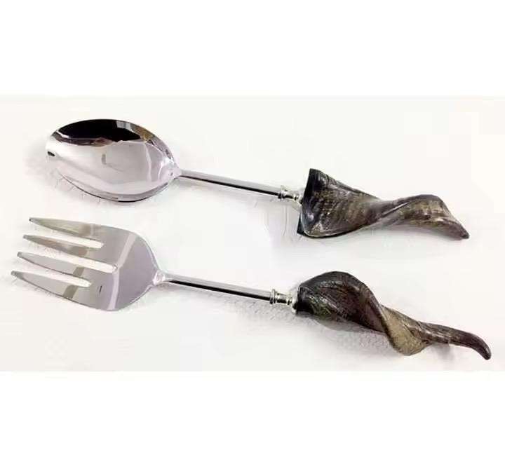 Wooden Salad Server Handle Unique Features Handmade Restaurant Kitchenware Stainless Steel Salad Server